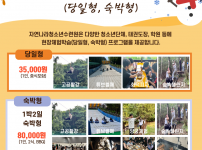 제목내용제목+내용 검색 6 태권도장, 학원, 청소년단체를 위한 자연나라 당일형, 1박2일 프로그램 안내 5 청소년 수련활동으로 학생들에게 즐거운 추억 만들기를 선물해 주세요! 4 2025년 대학교 MT, OT 3 지역아동센터, 복지센터, 학원, 태권도장 등 각종 단체 여름 1박2일 체험 2 2024 현장체험학습 안내(초등~고등) 1 2024 대학교 MT 및 OT